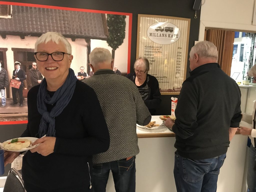 Besöket inleddes med fika på Millans Kafé. Ikväll var det Bitte som serverade.