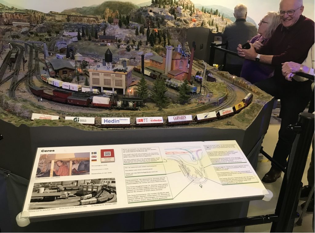 Kvällens guide var Lasse Claesson som berättade och visade runt i den stora anläggningen. Bakom kulisserna fanns Kalle ”överste stins” som såg till att alla växlar låg rätt och att tågen höll tidtabellen.