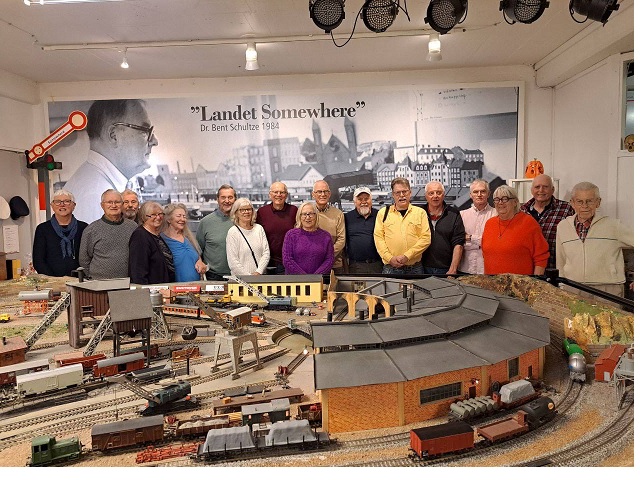 Kvällens guide var Lasse Claesson som berättade och visade runt i den stora anläggningen. Bakom kulisserna fanns Kalle ”överste stins” som såg till att alla växlar låg rätt och att tågen höll tidtabellen.